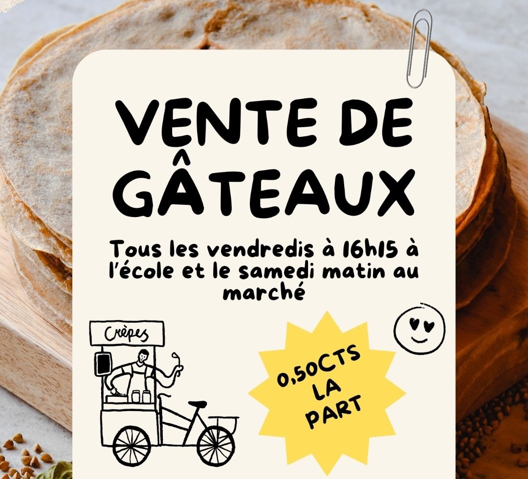 Les élèves de CM1 CM2 organisent une vente de gâteaux dans le cadre de leur voyage scolaire. Ils seront présents …